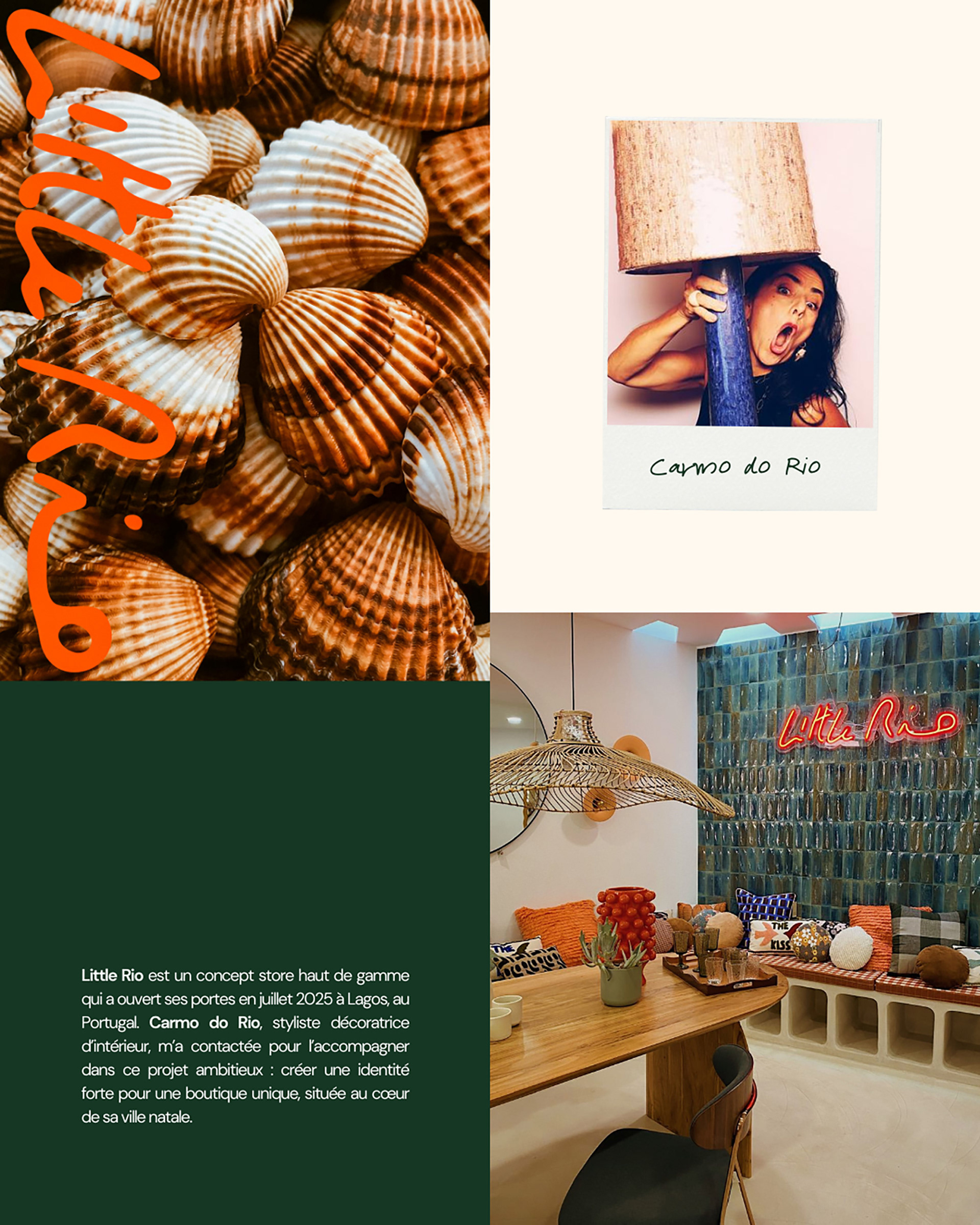 Carmo do Rio, styliste décoratrice d’intérieur, m’a contactée pour l’accompagner dans ce projet ambitieux : créer une identité forte pour une boutique unique, située au cœur de sa ville natale.